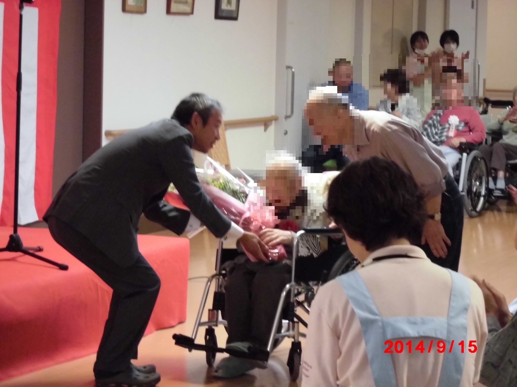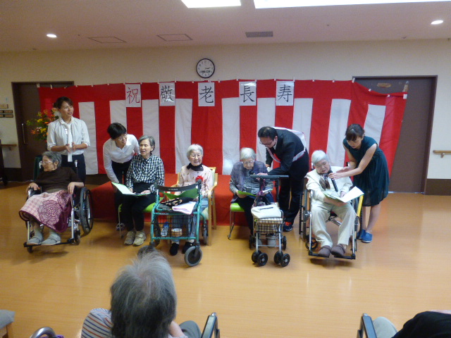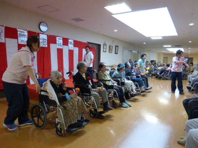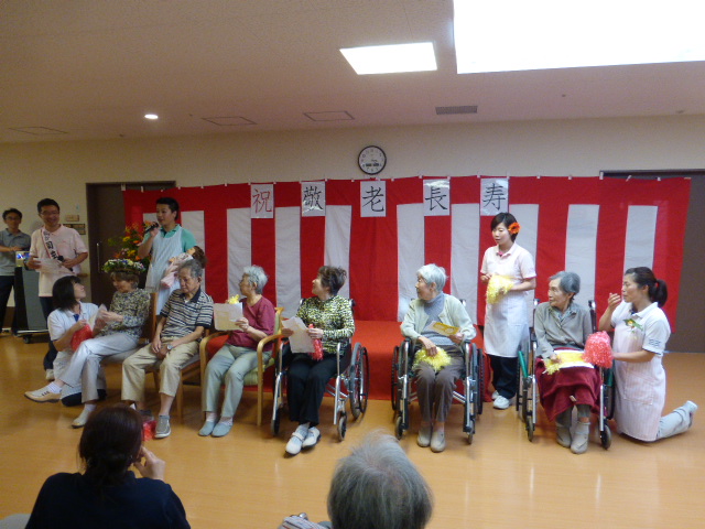 9月15日の敬老の日に、全ご利用者にロビーに集まって頂き敬老会を行いました。