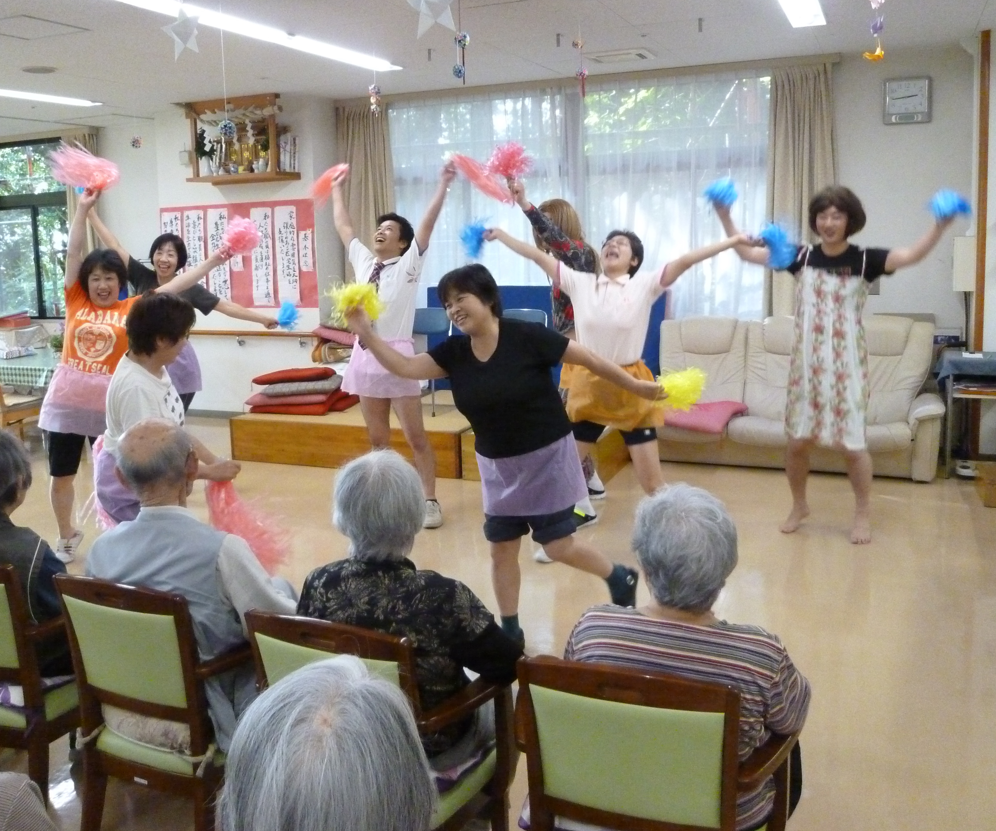 また、炭坑節チアガールアレンジバージョンでは、ご利用者の方も一緒に踊っていただき、皆様から盛大な拍手をいただきました。